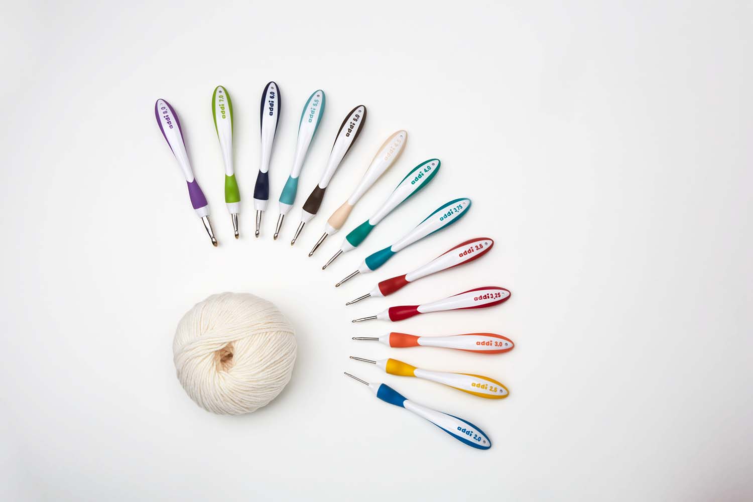 Die ergonomische Häkelnadel addiSwing mit ihrem geschwungenen Griff gibt es mittlerweile in drei Varianten: