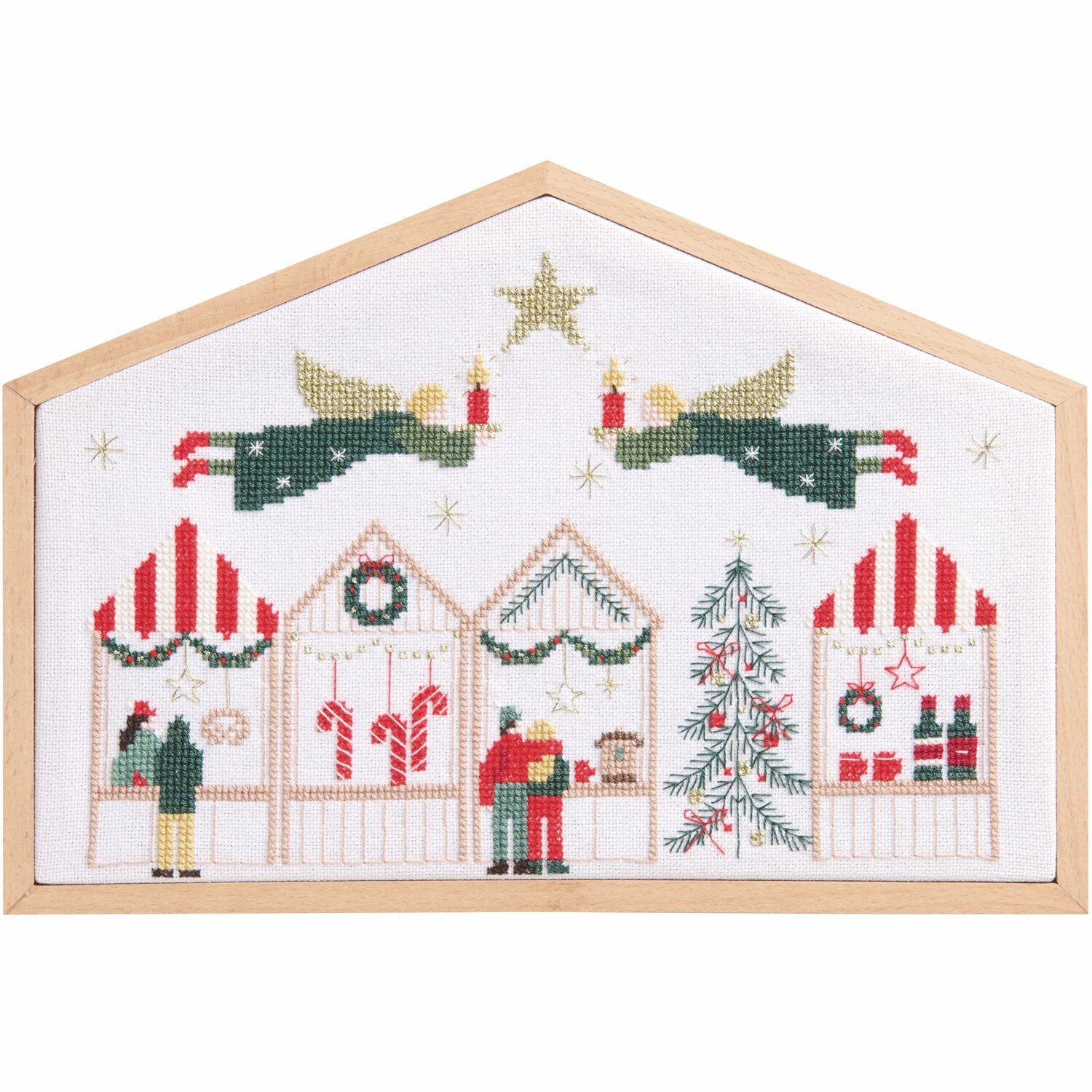 Weihnachtsmarkt im Dekorahmen (Stickbild) Gezählter Kreuzstich  |